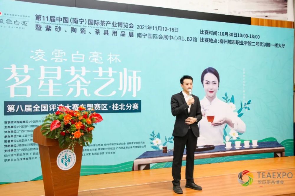 出席桂北分赛的嘉宾有:柳州城市职业学院经济管理系主任、学院茶文化研究学会会长李谦,华巨臣南宁茶博会项目负责人饶紫鹃,华巨臣茶博会南宁茶博会活动负责人陈春正。